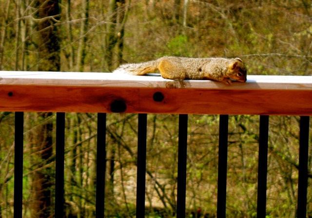 Coming in through the door’s opening were sweet chirping sounds. The trees awash in sun-lit greens had their usual hypnotic effect.
